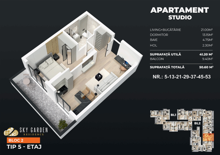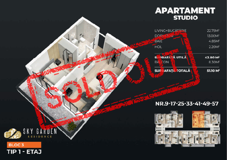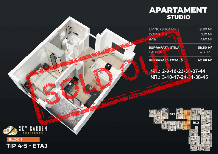 Studio-uri moderne ideale pentru cuplurile aflate la început de drum. S-au vândut rapid, mai sunt doar 2 unități disponibile!